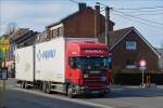 Scania R 620 Holztransporter ist mit seiner Ladung unterwegs zum nächsten Holzlagerplatz. 09.03.2016