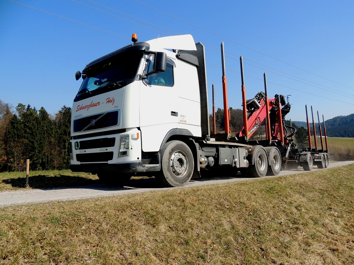 VOLVO FH-620, auf einem schmalen Güterweg im Mühlviertel zur nächsten Ladestelle; 150320