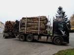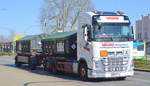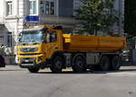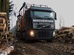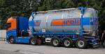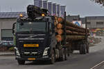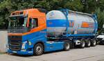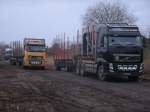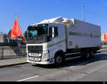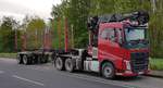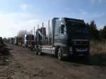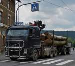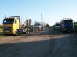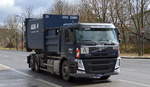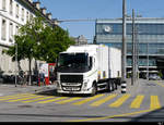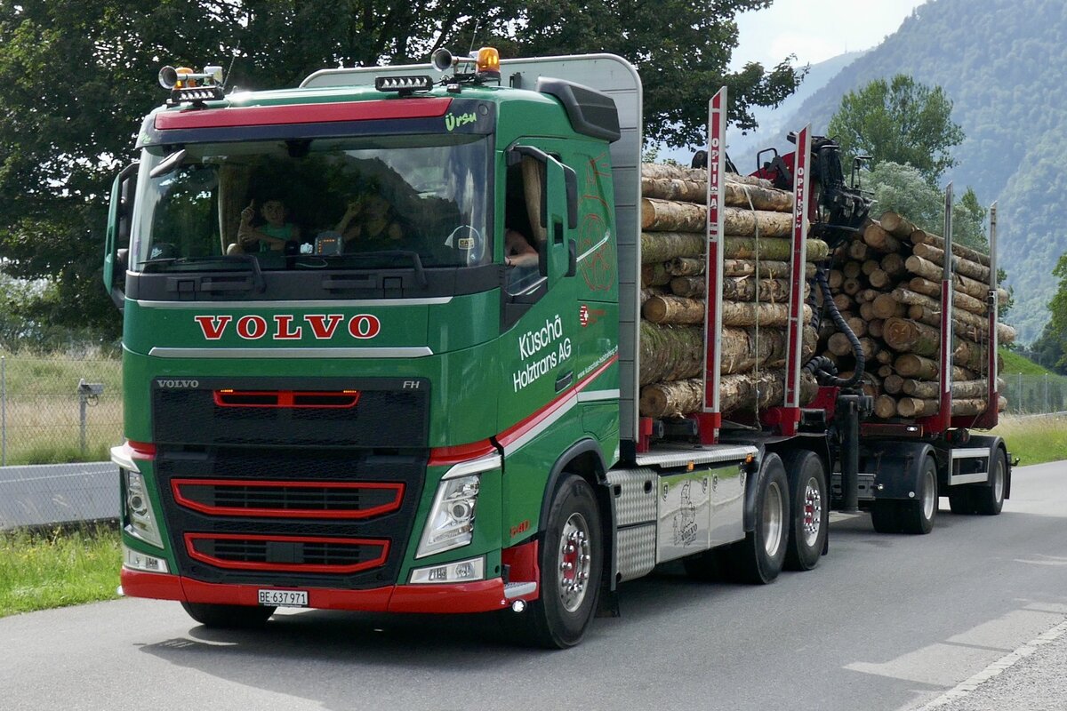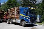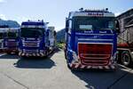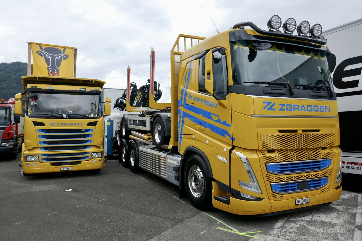 Mehrere Volvo Holztransporzt und Abrollcontainer von PLV Energieholz AG am 26.6.22 beim Trucker Festival Interlaken.