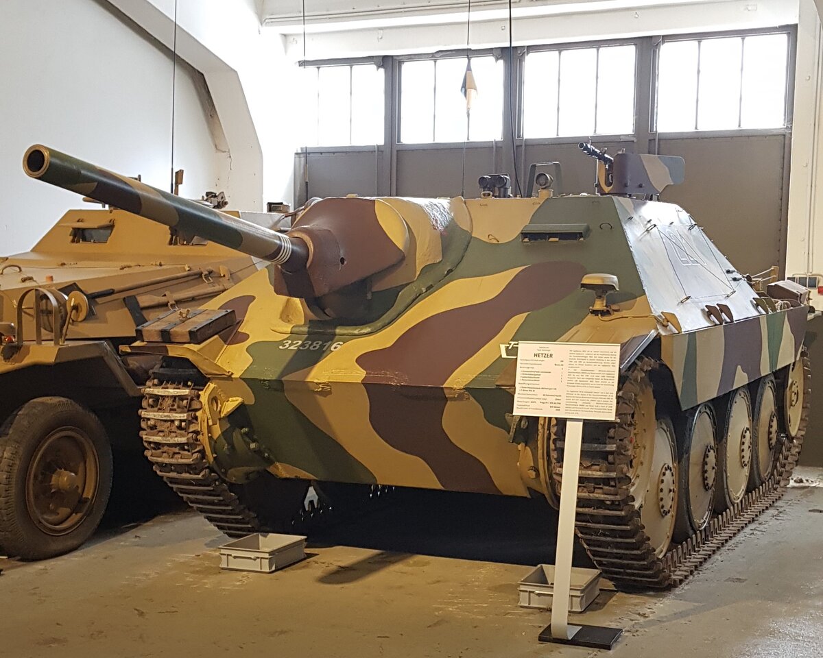 Walkaround Pak 43/41, Deutsche 88 mm Panzerabwehrkanone des 2. Weltkrieges, steht am Eingang von Clervaux, ein Ort im Norden von Luxemburg. 02.2023,