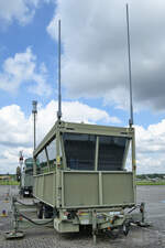 Im Vordergrund ein MAN 630 L2A mit der Flugsicherungsanlage 70 für Feldflugplätze, im Hintergrund der direkte Nachfolger, die Flugsicherungsanlage 90. (Militärhistorischen Museum der Bundeswehr am Flugplatz Berlin-Gatow, August 2023)