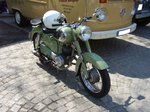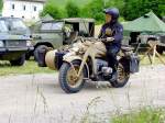 BMW R75 Gespann mit angetriebenem Seitenwagen. 1941 - 1944. Dieses feldgraue Beiwagenkrad hat einen 2-Zylinderboxermotor der aus 745 cm³ Hubraum 26 PS leistet. Oldtimertreffen Kettwig am 01.05.2016.