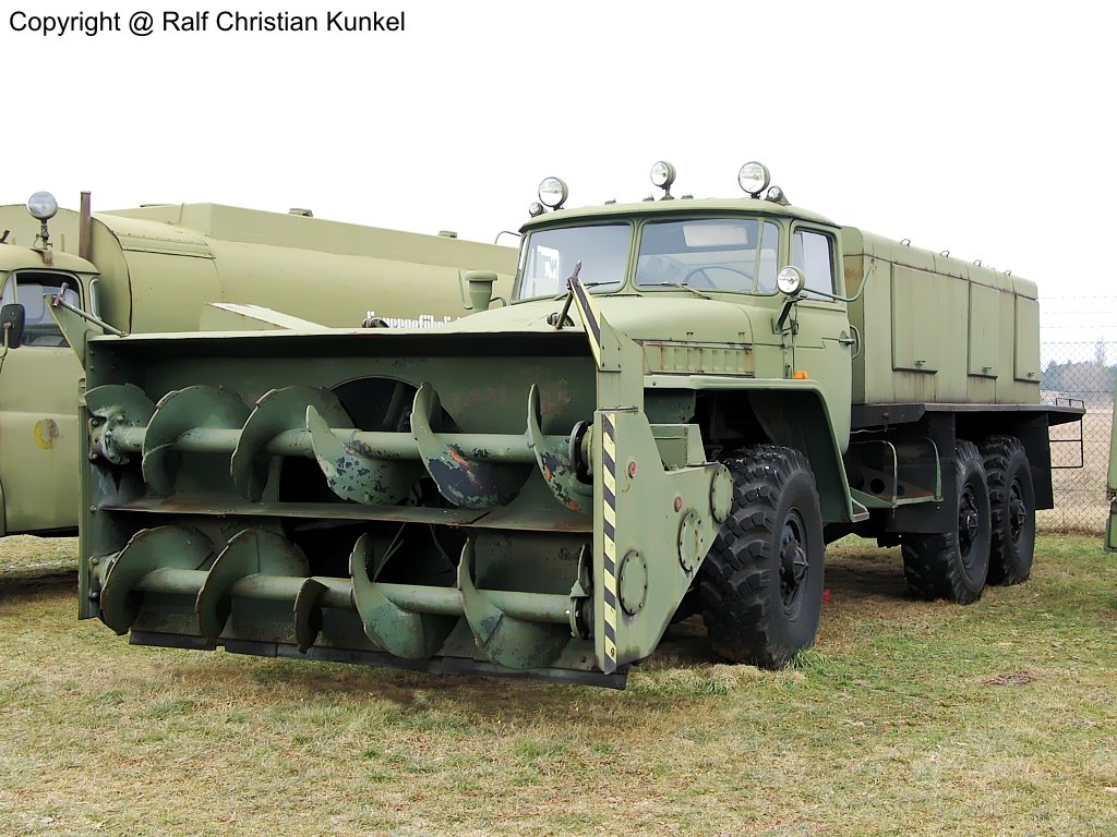 Ural 375 D D-902 Schneefräse - z.B. für Beräumung von Flugfeldern und anderen großen Flächen oder Straßen, Allrad, Otto-Motor, NVA - Fahrzeug im Bestand des Flugplatzmuseums Cottbus - fotografiert am 05.03.2006 - Copyright @ Ralf Christian Kunkel