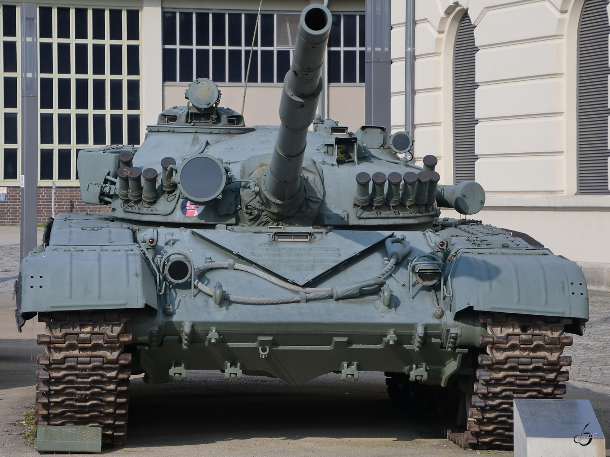 Ein Kampfpanzer T-72M der NVA im Militärhistorischen Museum der Bundeswehr. (Dresden, April 2017)