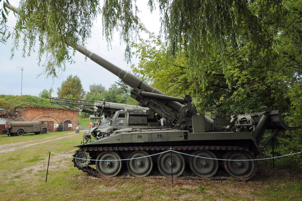 Das schwere Selbstfahrgeschütz M107 in der Zweigstelle Fort IX "Sadyba" des Armeemuseums Warschau. (August 2011)