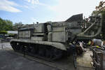 Im Bild die Startrampe 8U218 mit einer ballistische Boden-Boden-Rakete vom Typ SS-1B SCUD-A (R-11M Semlja, 8K11). Das Fahrzeug basiert auf den sowjetischen Jagdpanzer ISU-152K. (Waffenmuseum Kołobrzg (Kolberg), September 2024)