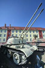 Im Museum für Luftverteidigung in Koszalin (Köslin) war Anfang September 2024 diese Flugabwehr-Selbstfahrlafette vom Typ ZSU-57-2 auf Basis eines modifizierten T-54-Panzers ausgestellt.