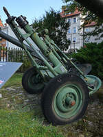 Der 120-mm-Granatwerfer M1938/1943 wurde während des Zweiten Weltkrieges in der Sowjetunion entwickelt und ist hier Anfang September 2024 im Waffenmuseum Kołobrzg (Kolberg) zu sehen.