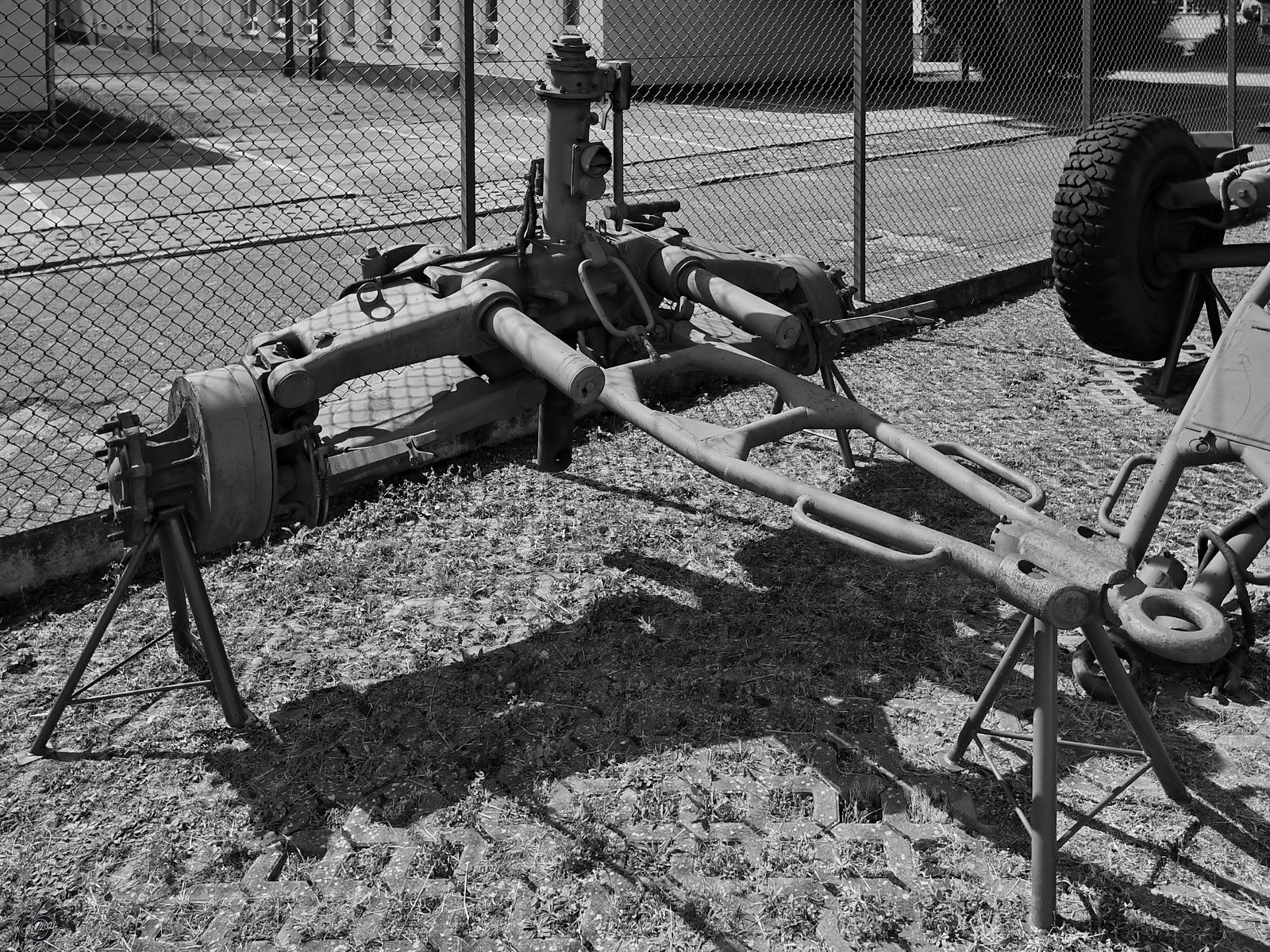 Im Bild eines der beiden benötigten Achsen für den Transport einer Abschussplattform für Flugabwehrraketen. (Museum für Luftverteidigung Koszalin (Köslin), September 2024)