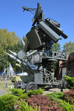 Die 23-mm-Flugabwehrkanone SU-23-2 wurde in den 1960er Jahren in der Sowjetunion entwickelt und ist hier Anfang September 2024 als Teil der Ausstellung im Museum für Luftverteidigung in Koszalin (Köslin) zu sehen.