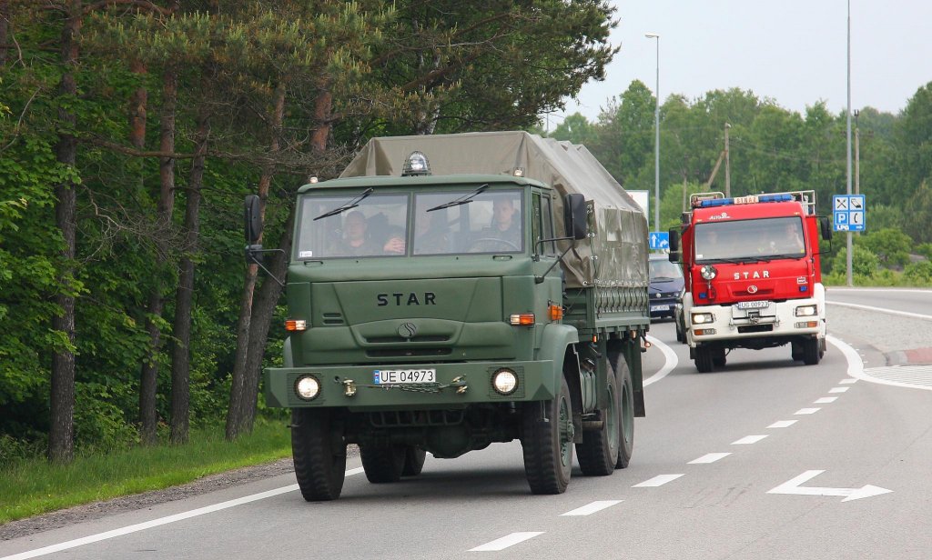 Star Dreiachser des polnischen Militärs hier auf der Fahrt bei Lebork am 3.6.2013.