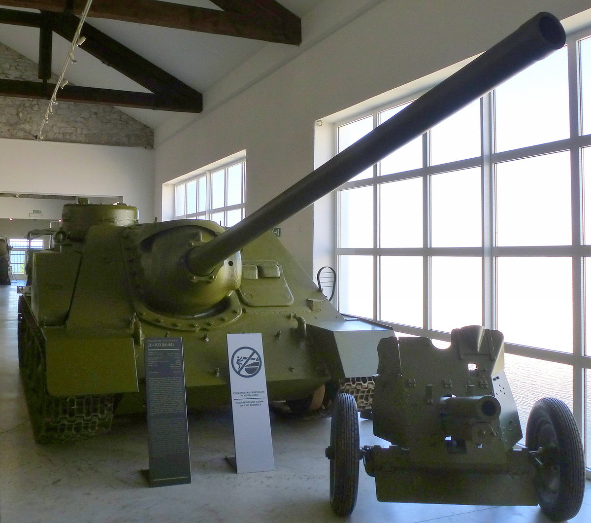 SU-100, sowjetischer Jagdpanzer, gebaut 1944-46, 12-Zyl.Diesel mit 500PS, Vmax.48Km/h, Militärmuseum Pivka/Slowenien, Juni 2016