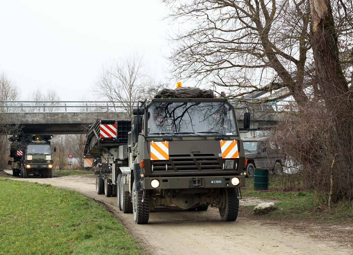 Steyr 1491 310/S 37 6 x 6 Sattelschlepper 95 mit Brückenmodul im Dienste des Pontonier Bataillons 26 am 15. März 2018 bei Arch.