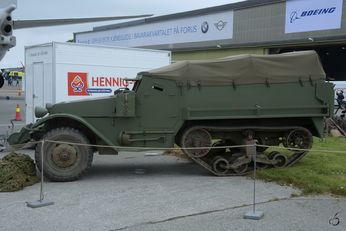 Das Halbkettenfahrzeug M3 des Kriegshistorischen Museums Rogaland auf dem Flughafen Stavanger.