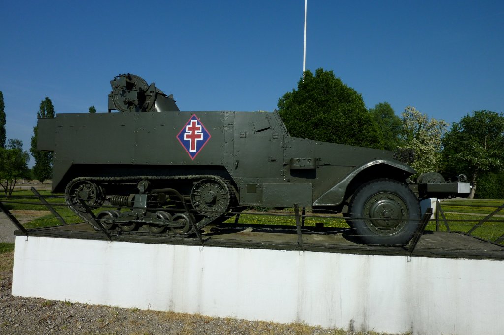 Halbkettenfahrzeug der amerikanischen Armee im II.Weltkrieg, ausgestellt am Magniot-Denkmal in Marckolsheim/Elsaß, Mai 2011