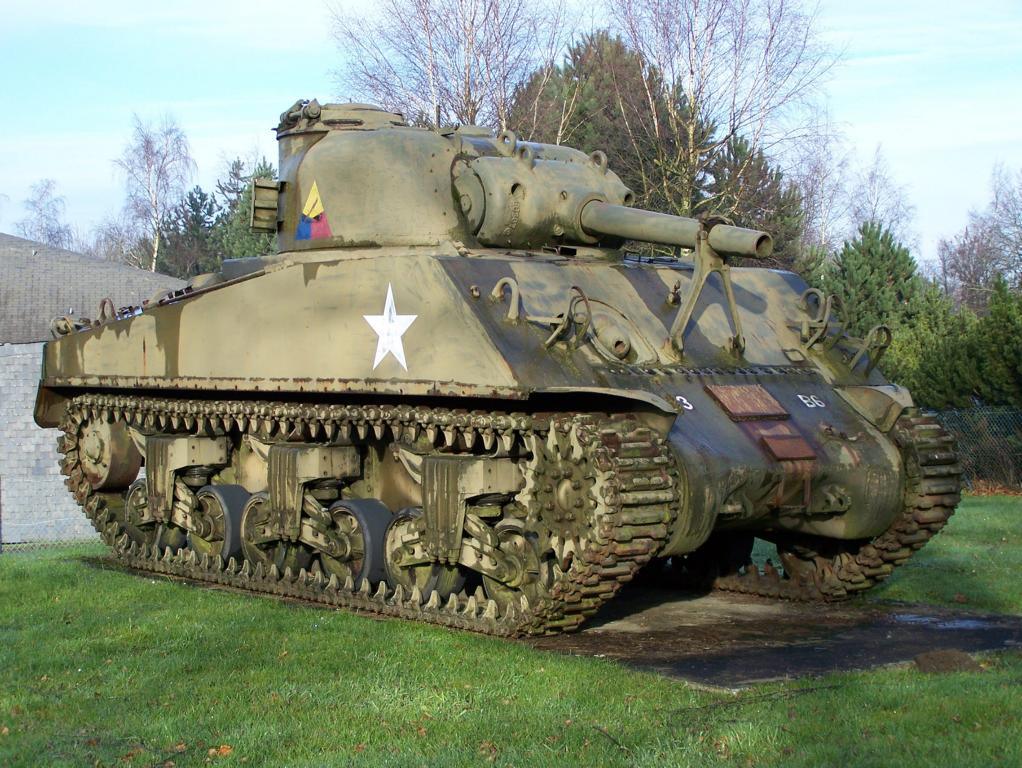 Kampfpanzer M4A1(76)W HVSS Sherman steht vor dem Nationalen Museum für Militärgeschichte in Diekirch Luxemburg, 13. 5. 2025