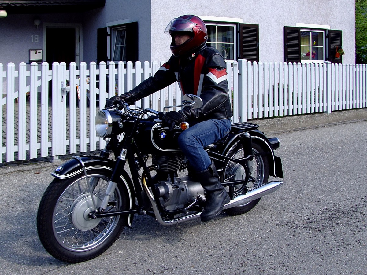BMW R32. Die R32 war das erste Motorradmodell der Marke BMW und wurde im Oktober 1923 vorgestellt. Bis zur Ablösung des Modelles durch die R42 verkaufte BMW circa 3900 Motorräder dieses Typs. Das gezeigte Motorrad wurde 1925 gebaut. In diesem Jahr kostete ein solches Motorrad nackt ( also ohne das aufpreispflichtige Zubehör wie Beleuchtungsanlage, Tachometer und Soziussitz) genau RM 2200,00. Der fahrtwindgekühlte Zweizylinderboxermotor hat einen Hubraum von 494 cm³ und leistet rund 8,5 PS. Angeblich konnten rund 100 km/h an Höchstgeschwindigkeit erreicht werden. Techno Classica Essen am 10.04.2025.