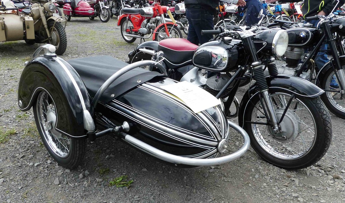 =DKW RT 350 S, Bj. 1954, 18,5 PS, mit Steib-Seitenwagen, gesehen bei den Motorrad-Oldtimer-Freunden Kiebitzgrund im Juni 2018
