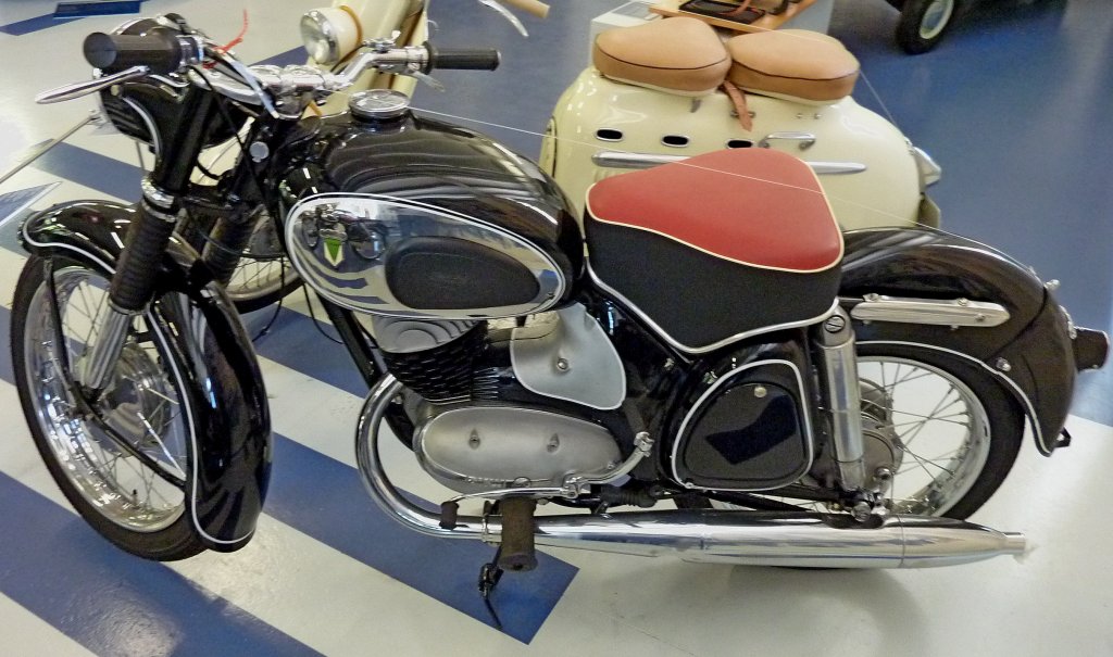 DKW RT200/S, Baujahr 1956, 197ccm und 11PS, Vmax.103Km/h, 144.200 Stück wurden zusammen mit der baugleichen RT175 in Ingolstadt gebaut, Automuseum Schramberg, Mai 2012