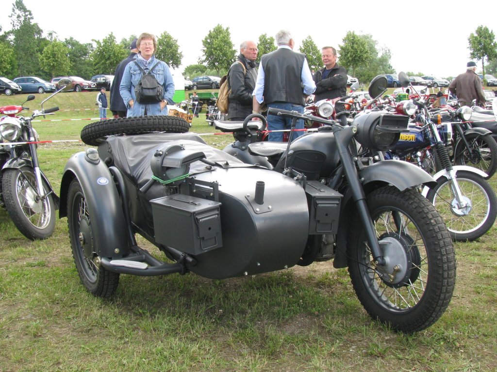 sowjetisches Motorrad "Dnepr" mit Beiwagen, Baujahr ? aus dem Landkreis Bad Doberan (DBR) beim Oldtimertreffen in Gnoien [25.06.2011]