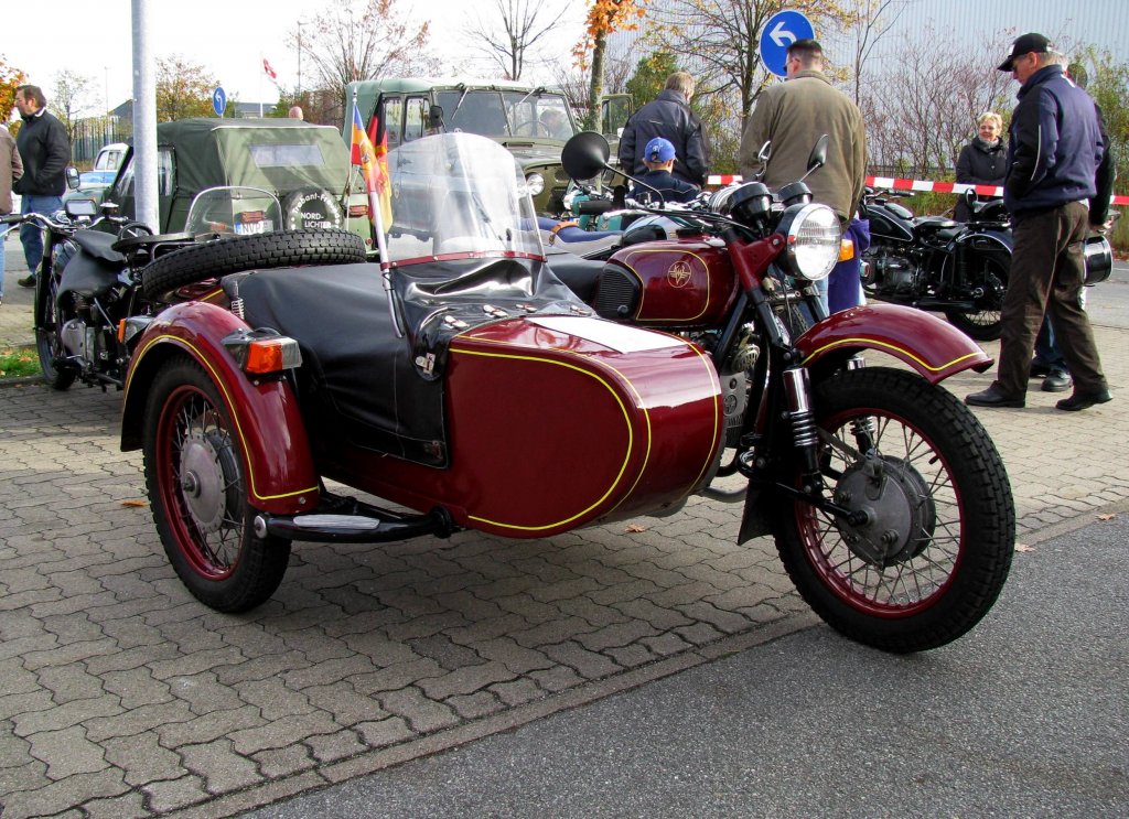 Motorrad MT 10 "Dnepr" mit Seitenwagen aus dem ehem. Landkreis Bad Doberan (DBR) fotografiert beim 9. Oldtimertreffen am HEROS-Ostprodukte-Discounter, Rostock/Broderstorf [27.10.2012]