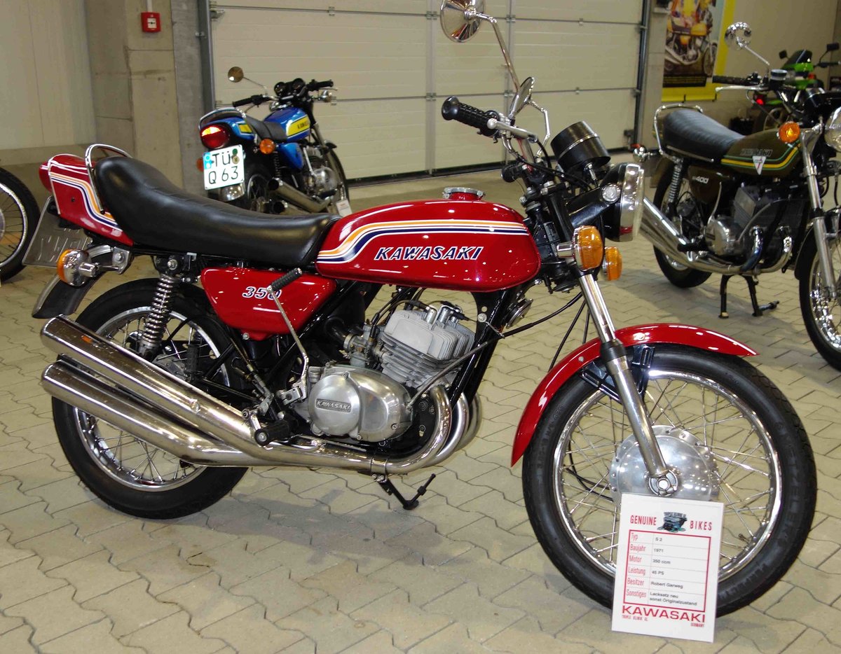 =Kawasaki 350, ausgestellt bei der Technorama Kassel im März 2017