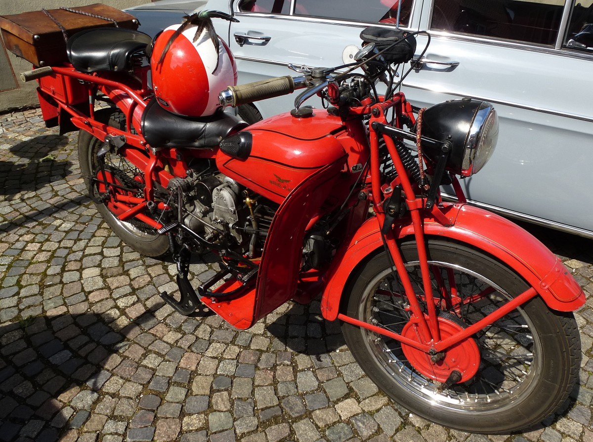 Moto Guzzi, italienisches Oldtimer-Motorrad, ausgestellt zum Waldkircher Sonntag, Juli 2014