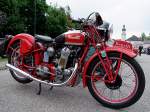 Norton Commando 850 MK3, wie sie ab 1976 verkauft wurde. Dieses Modell war das einzige der "Commando-Baureihe" das das Bremspedal rechts hatte. Als Motorisierung dient diesem Motorrad ein fahrtwindgekühlter Zweizylinderparalelltwinmotor mit einem Hubraum von 828 cm³ und einer Leistung von 51 PS. Mittels ein Vierganggetriebes erreicht dieses Modell eine Höchstgeschwindigkeit von 190 km/h. Classic car meeting in Brynmawr/South Wales am 27.07.2025. Michael H.