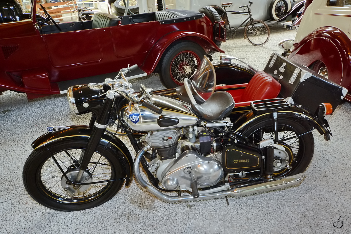 Eine NSU Konsul 351 OS-T, Baujahr 1951 stand Mitte Mai 2014 im Technik-Museum Speyer.