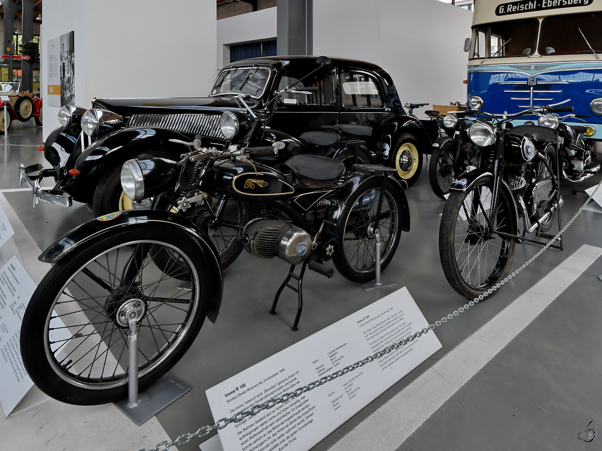 Ein Imme-Motorrad R 100 aus dem Jahr 1949, so gesehen Mitte August 2020 im Verkehrszentrum des Deutschen Museums in München.