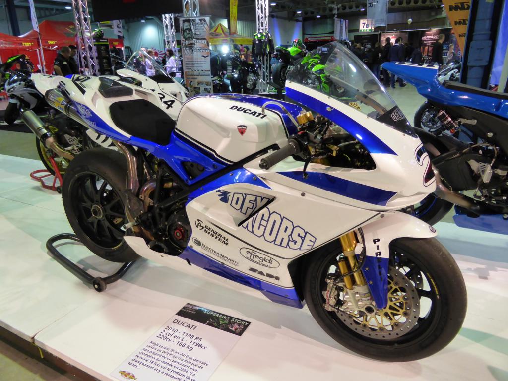 Ducati 999R aus dem Jahr 2005. Dieses Superbike-Modell wurde von 2003 bis 2006 in einer kleinen Serie gebaut. Die Ducati 999R war mit einer Leistung von 150 PS das leistungsstärkste Zweizylinder-Serienmotorrad in der 1000 cm³-Klasse. Der V2-Motor hat einen Hubraum von genau 999 cm³ und leistet, je nach Modelljahr, zwischen 139 PS und 150 PS. Classic Remise Düsseldorf am 29.03.2025. Michael H.
