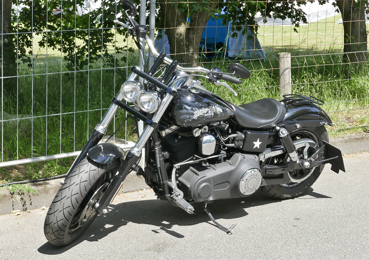 Harley Davidson, gesehen am Bahnhof Hugstetten, Juni 2025