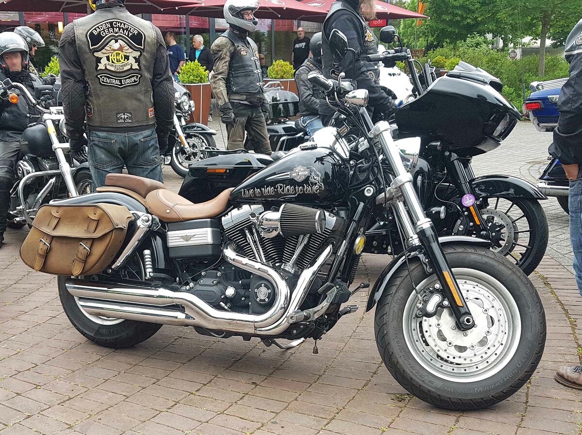 =Harley Davidson steht bereit zur Ausfahrt des Konrad-Zuse-Hotels in Hünfeld, 05-2022