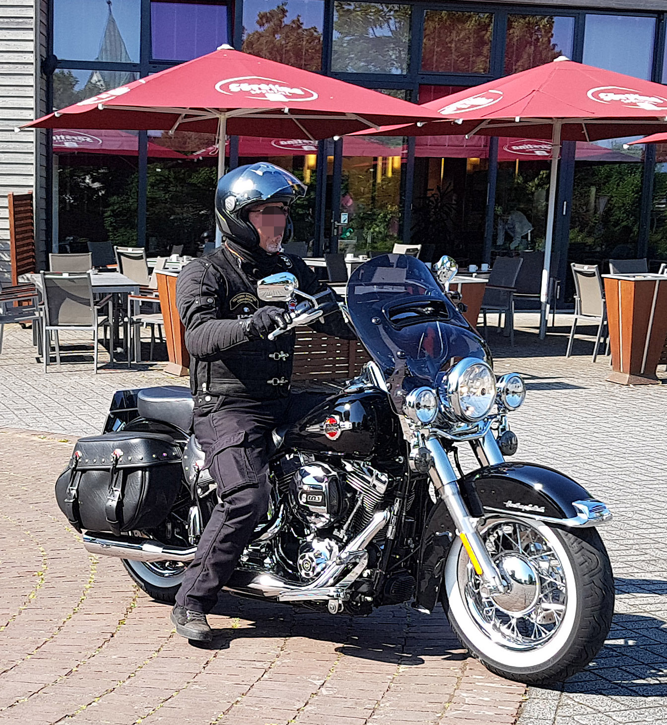 =Harley Davidson ist abfahrbereit zur geführten Tour am Konrad-Zuse-Hotel in Hünfeld, 06-2023