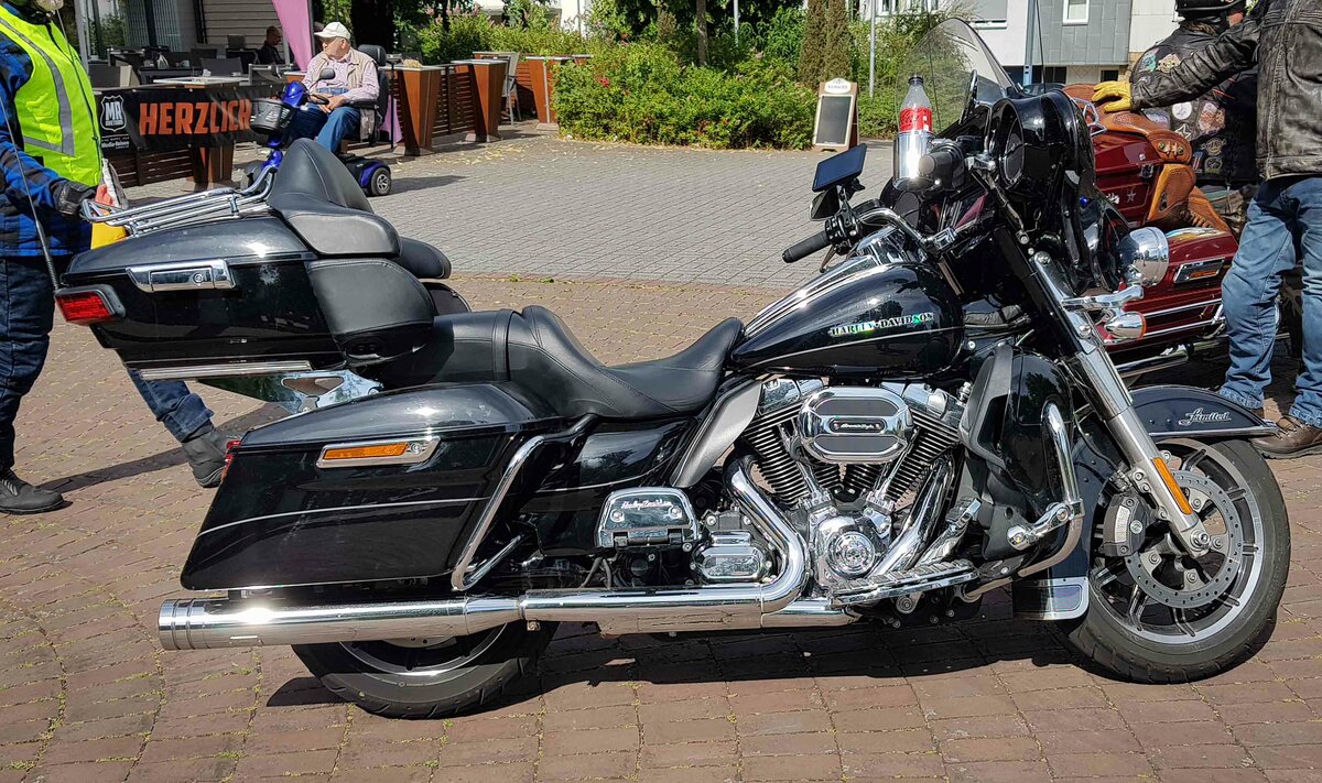 =Harley Davidson steht abfahrbereit zur geführten Tour vom Konrad-Zuse-Hotel in Hünfeld, 07-2023