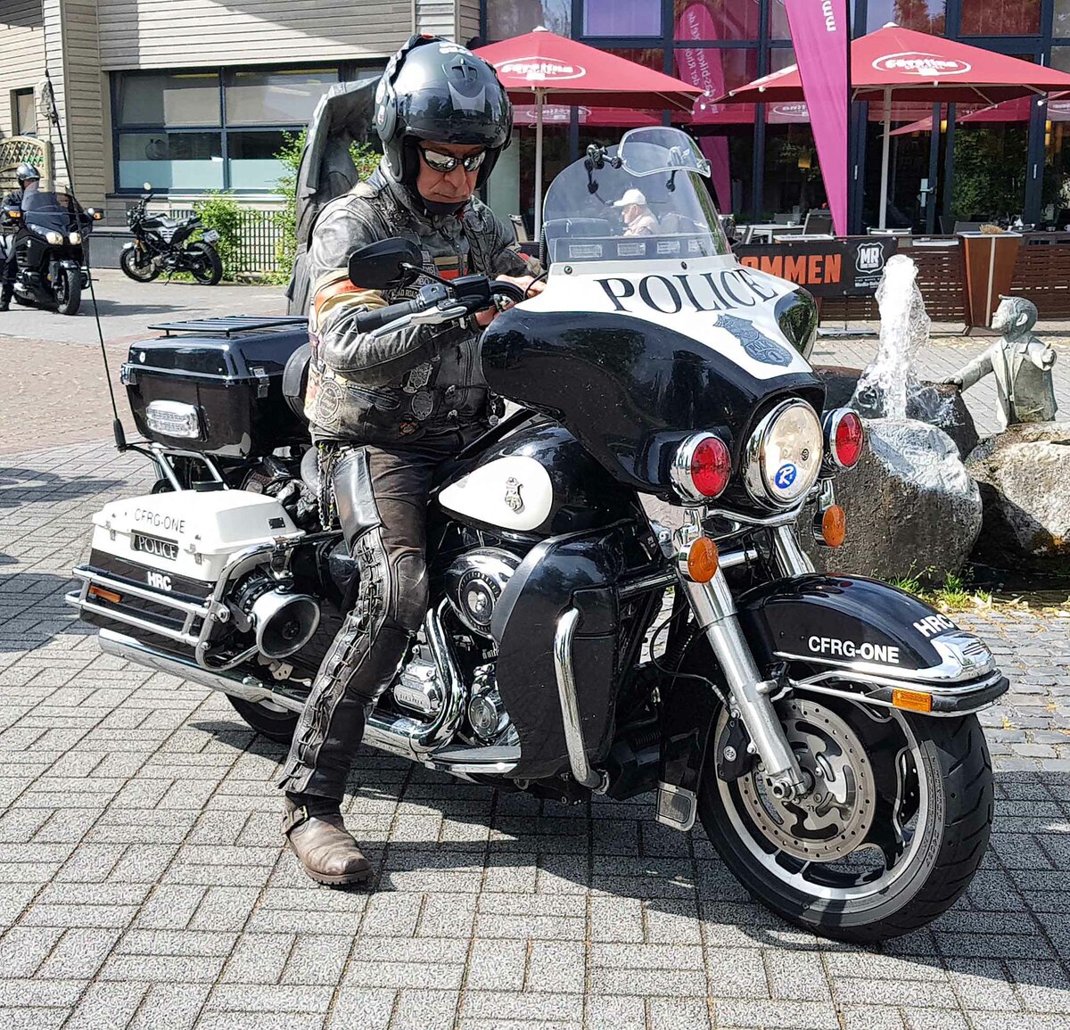 =Harley Davidson steht abfahrbereit zur geführten Tour vom Konrad-Zuse-Hotel in Hünfeld, 07-2023
