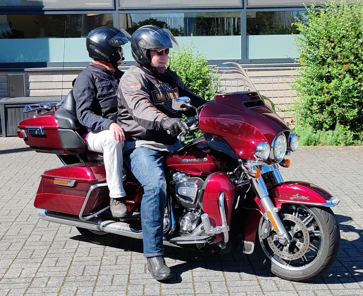 =Harley Davidson steht abfahrbereit zur geführten Tour vom Konrad-Zuse-Hotel in Hünfeld, 07-2024