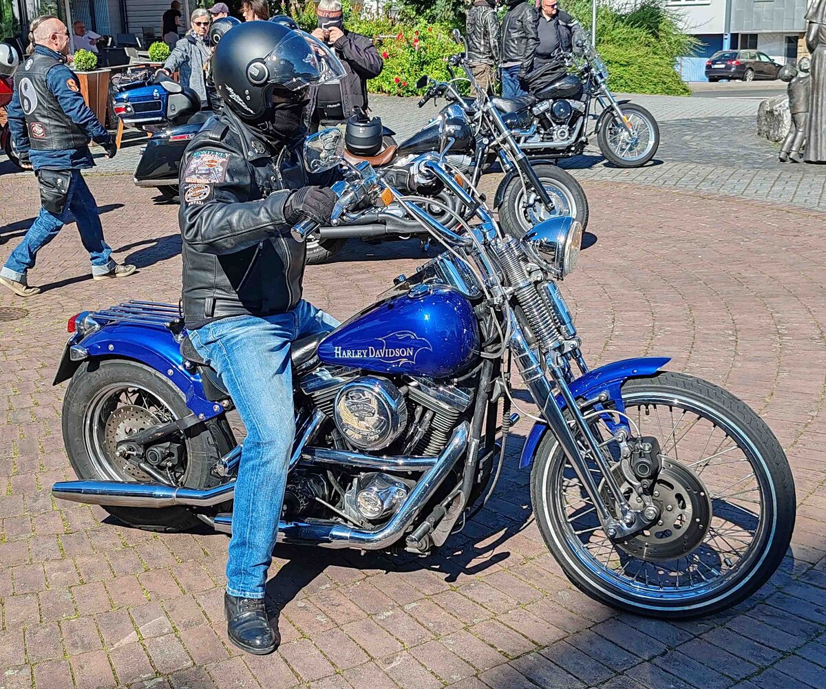 =Harley Davidson steht abfahrbereit zur geführten Tour vom Konrad-Zuse-Hotel in Hünfeld, 07-2024