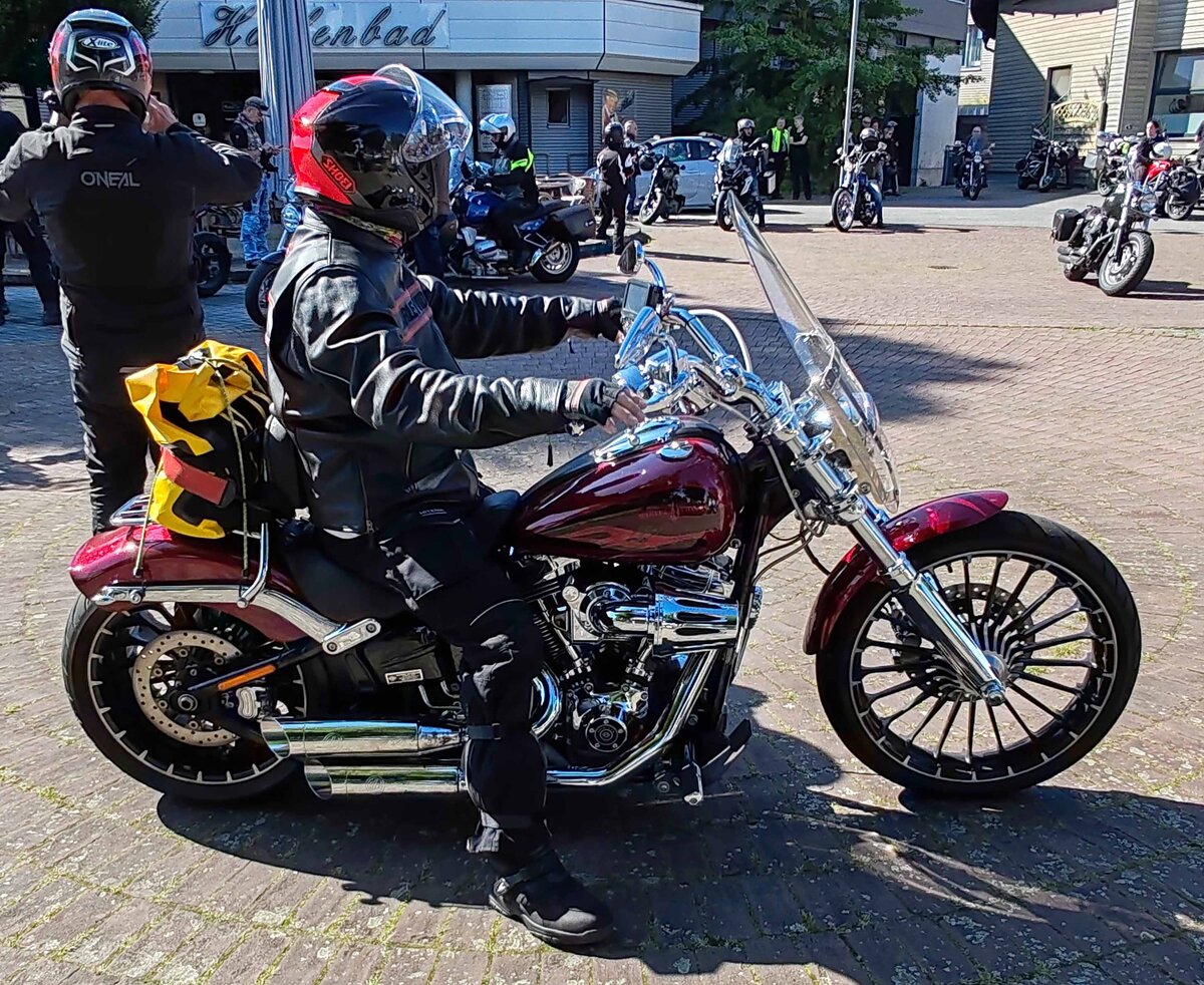 =Harley Davidson steht abfahrbereit zur geführten Tour vom Konrad-Zuse-Hotel in Hünfeld, 07-2024