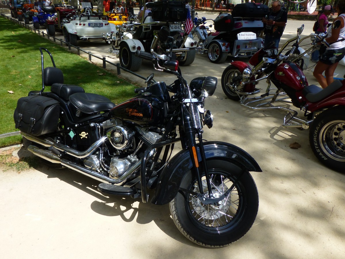 Frankreich, Languedoc, Hérault, Montpellier, Esplanade Charles de Gaulle. Während ihrer 25. "bike week" am Cap d'Agde (Hérault) haben sich die 500 "Brescoudos" zum ersten Mal am 27.08.2013 einen Ausflug mit ihren Harley-Davidson ins Zentrum von Montpellier gegönnt.