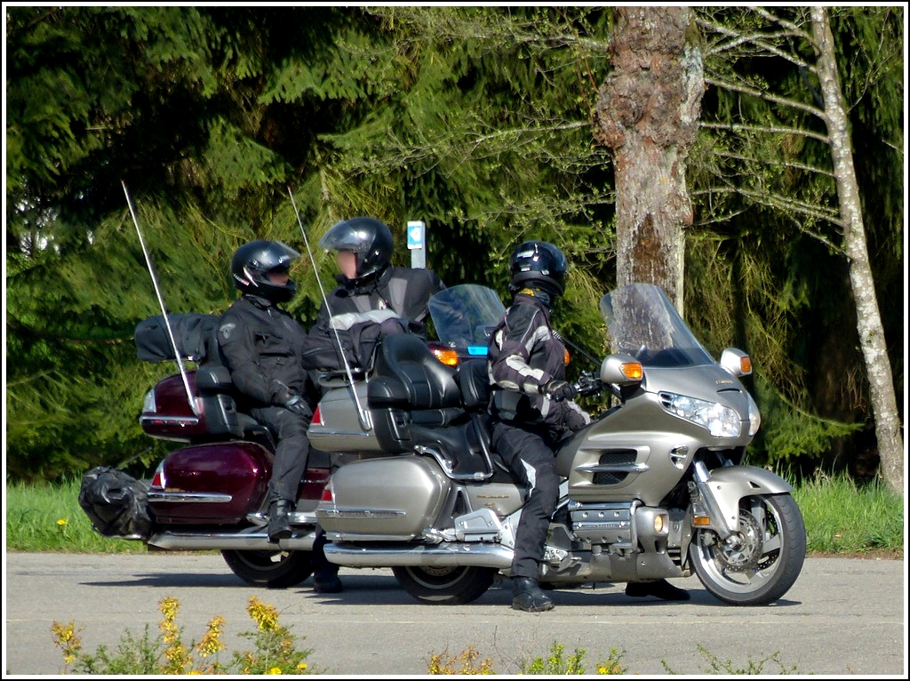 An einer Ausweichbucht besprechen diese Goldwingfahrer die Fortsetzung ihrer Rundfahrt. 30.04.2012