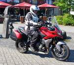 =Triumph Tiger steht abfahrbereit zur geführten Tour vom Konrad-Zuse-Hotel in Hünfeld, 08-2024