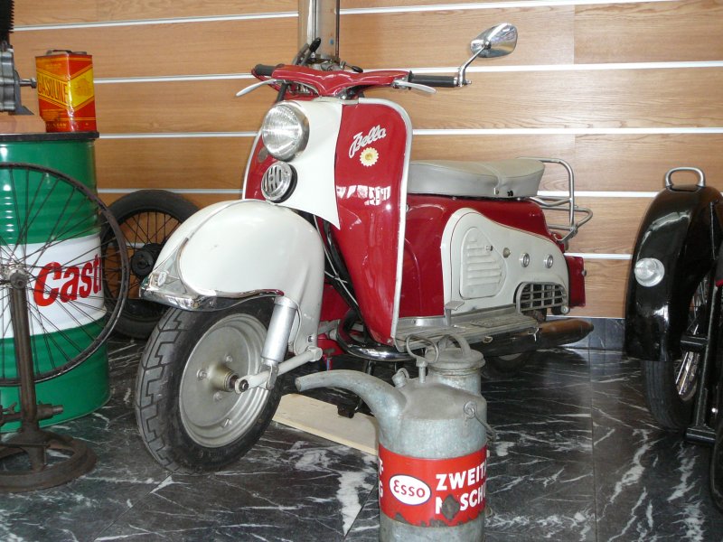 Die Zündapp Bella steht in der Ausstellung "50er Jahre - Wirtschaftswunderzeit" im Probsteihaus der Gemeinde Petersberg. Veranstalter ist der Heimatverein Petersberg