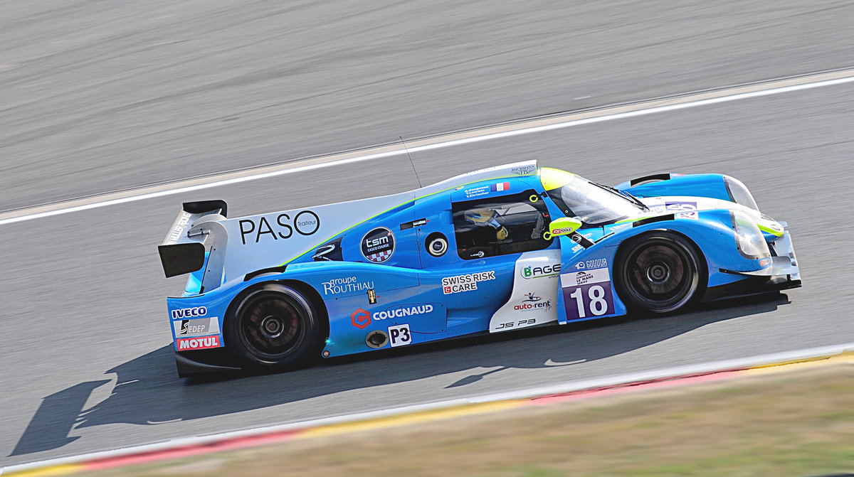 LMP3 Ligier JS P3 - Nissan, vom Team M.RACING - YMR, beim 4 Stunden Rennen der European Le Mans Series am 25.9.2016 in Spa Francorchamp. Mitgezogen und schräg in Szene gesetzt um die Dynamik mehr auszudrücken!