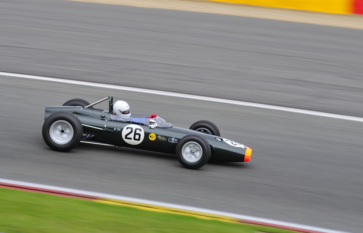 Mitzieher Nr.26, BRM P261 2, BJ.1964, 1498ccm, Fahrer: MULLEN Peter (GB), Class 11 - Pre 1966 1.5 litre multi-cylinder Formula 1 cars, Historic Grand Prix Cars Rennen, am 19.Sep.2015 im Rahmenrennen der 6h Classic.
