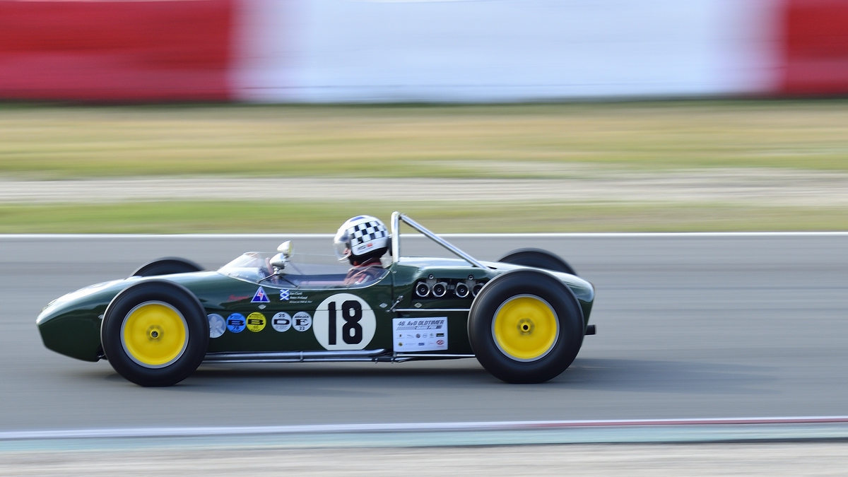 Mitzieher der Nr.18 Chisholm, John im Lotus 18 372 von 1960. 46. AvD-Oldtimer-Grand-Prix 2018, Rennen 6 Historic Grand Prix Cars bis 1965 am 11.Aug.2018