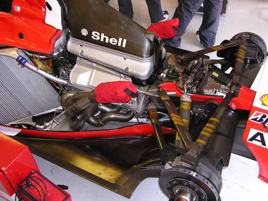 Motorblock einem alten Ferrari F-1 Wagen. Hungaroring, 03.09.2010.
