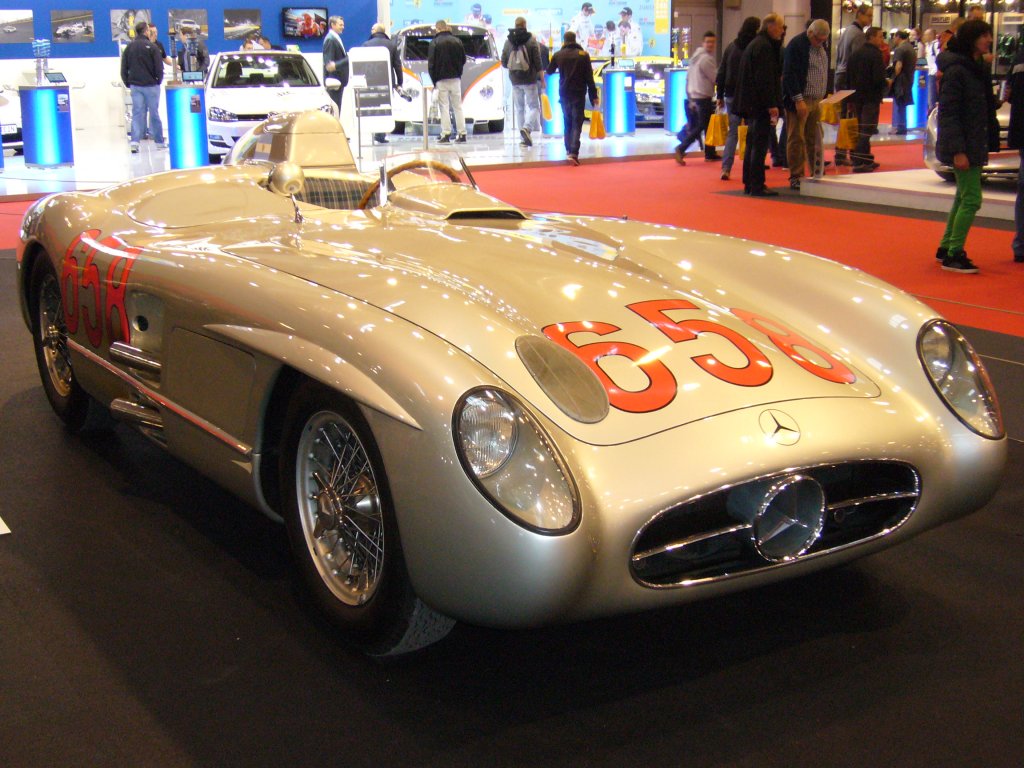 Mercedes Benz 300 SLR. Hier wurde eines der Siegerfahrzeuge der Weltmeisterschaft 1955 abgelichtet. Dieser Wagen wurde unter anderem von den Rennfahrerlegenden Juan Manuel Fangio, Stirling Moss, KarlKling und Hans Herrman pilotiert. Essen Motor Show am 06.12.2012.