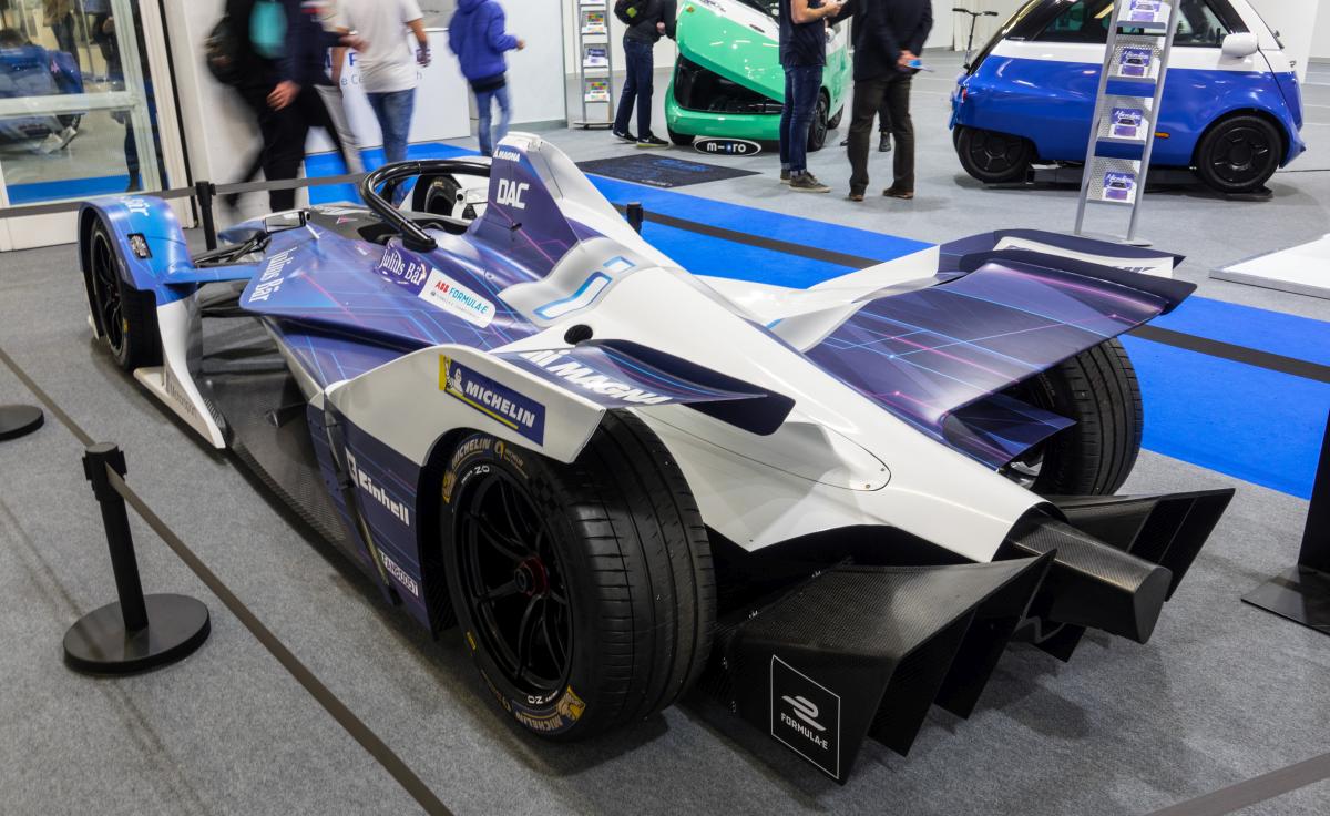 Formel E Rennwagen (Rückansicht), ausgestellt auf der "Auto Zürich", November 2018.
