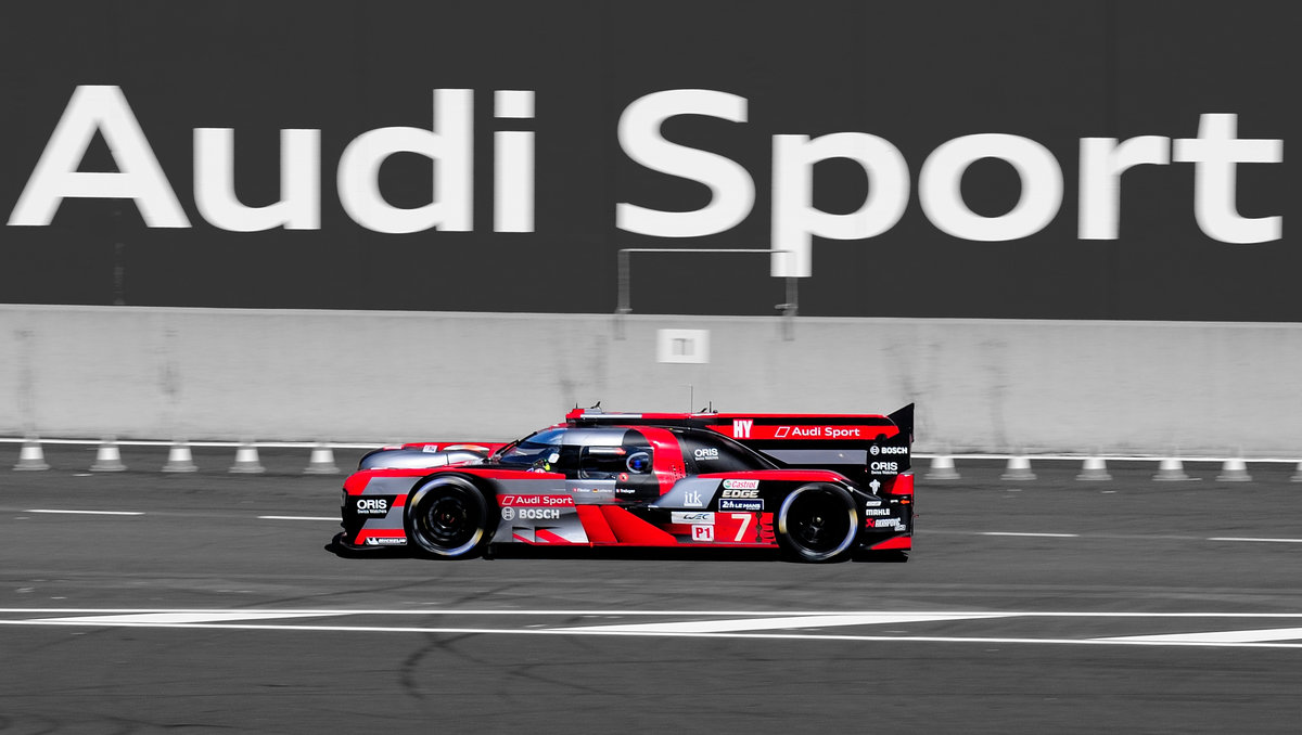 Audi R18, Audi Sport Team Joest, Nr.8 am 18.6.2016 in Le Mans. Nach 18 Jahre beendet Audi das LMP1 Projekt, und die Teilnahme bei den 24 Stunden von Le Mans, mit insgesamt 13 Gesamtsiege.